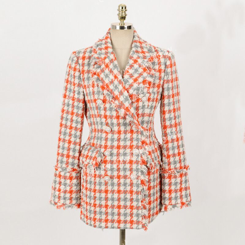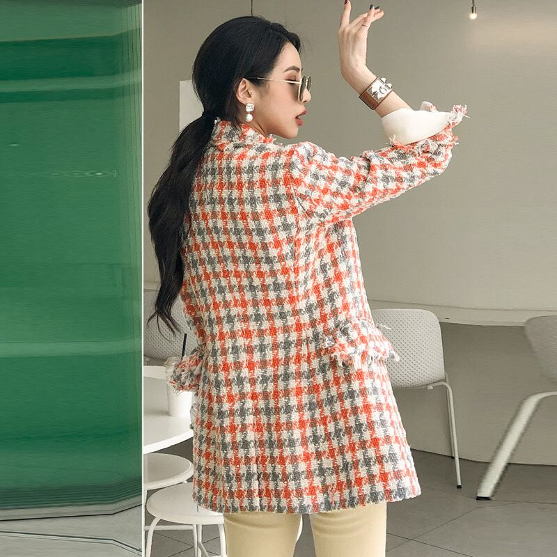 Pinkoz ファッション冬厚いツイード ジャケット ノッチ ネック フル スリーブ ボタン高級ぬるぬる トップス女性レディ コート シック ピンク ウィンター 冬物