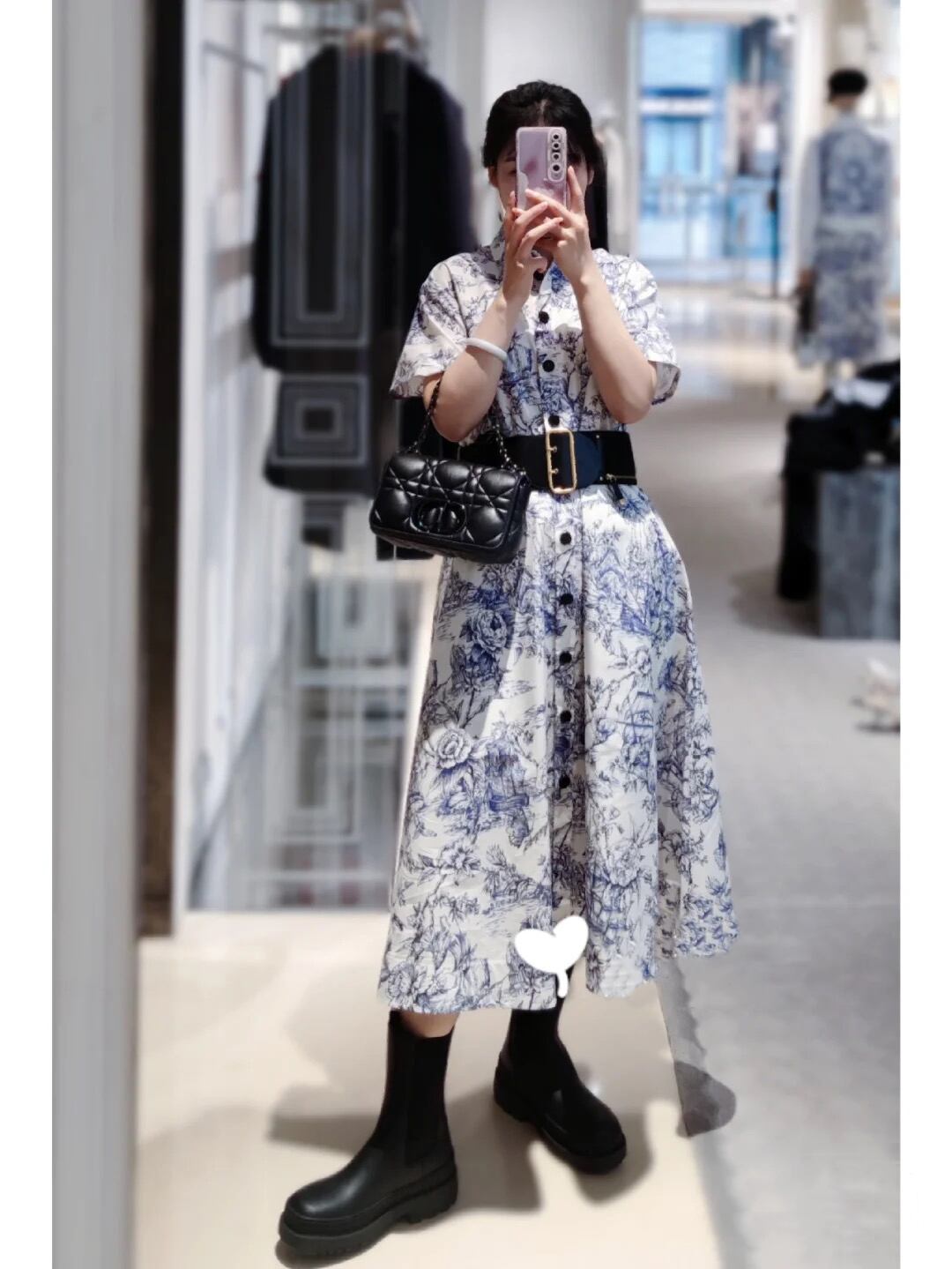 Pinkoz 女性夏春シングルブレストターンダウン襟半袖エレガントな花柄プリント作業服ドレスベルト ショート ピンク ハーフスリーブ スプリング 春物 サマー 夏物 ハーネス
