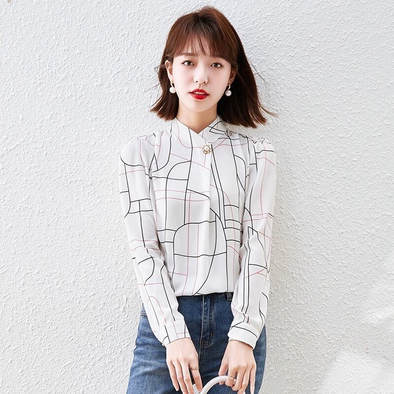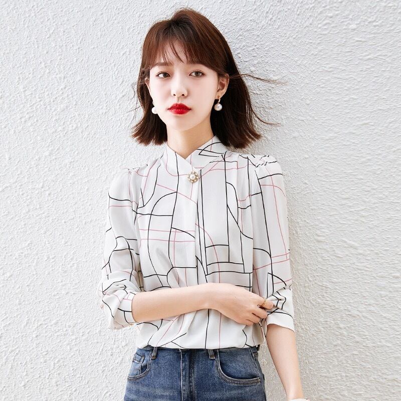 Pinkoz デザイナー女性のエレガントな 1 ボタン白チェック柄プリント女性ブラウスエレガントなオフィスの女性のシャツ春夏服 ピンク ホワイト スプリング 春物 サマー 夏物 会社 学校 通勤や通学にも