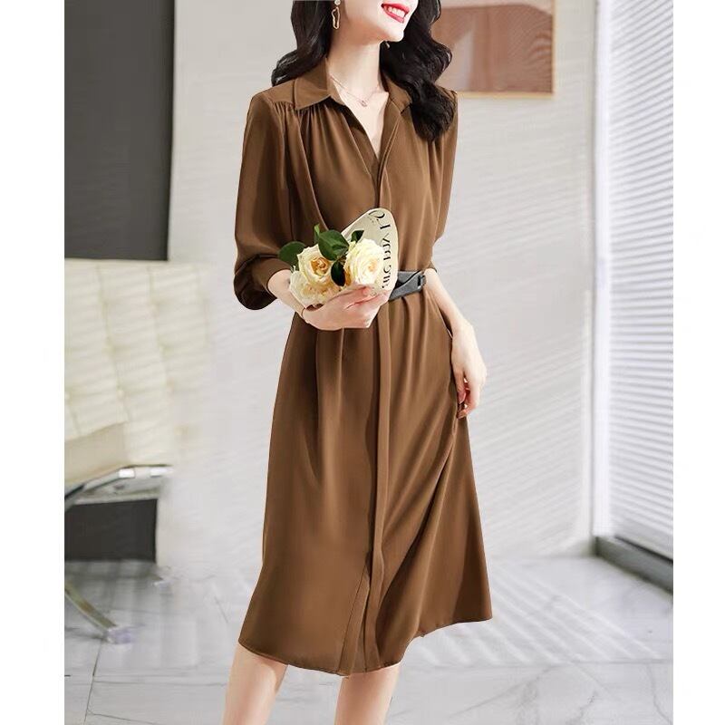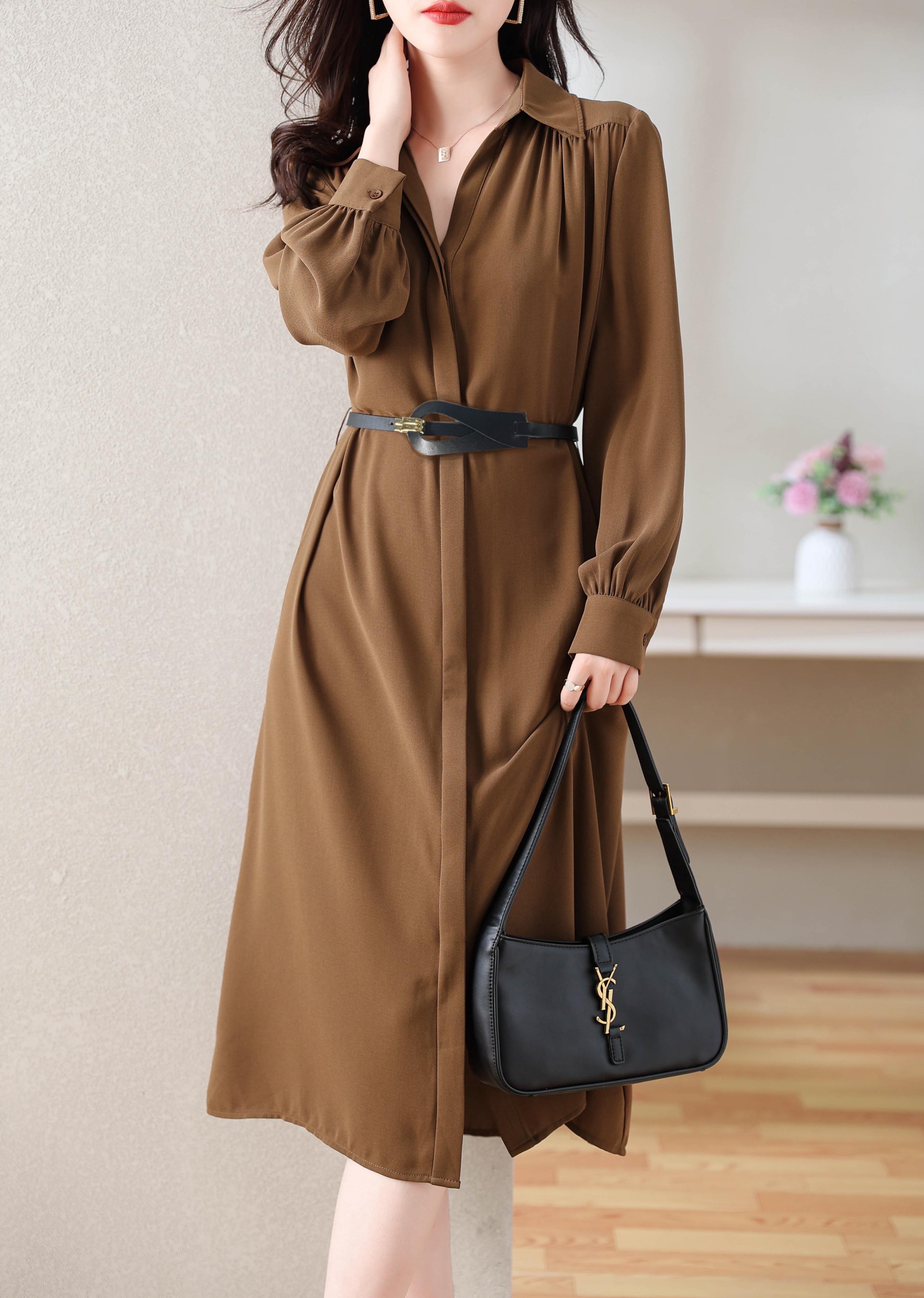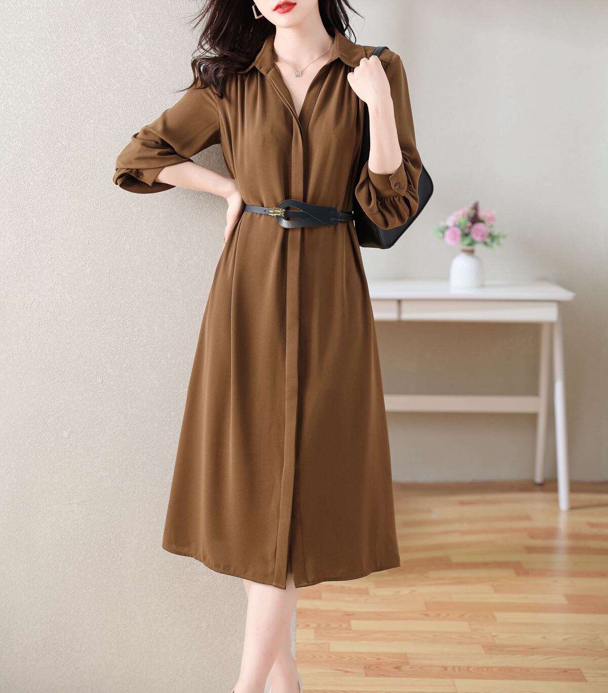 Pinkoz 女性エレガントなヴィンテージ vestidos ブラウンシングルブレストオフィスレディターンダウン襟ミディドレス秋冬とベルト ピンク オータム 秋物 ウィンター 冬物 ハーネス ビンテージ 会社 学校 通勤や通学にも