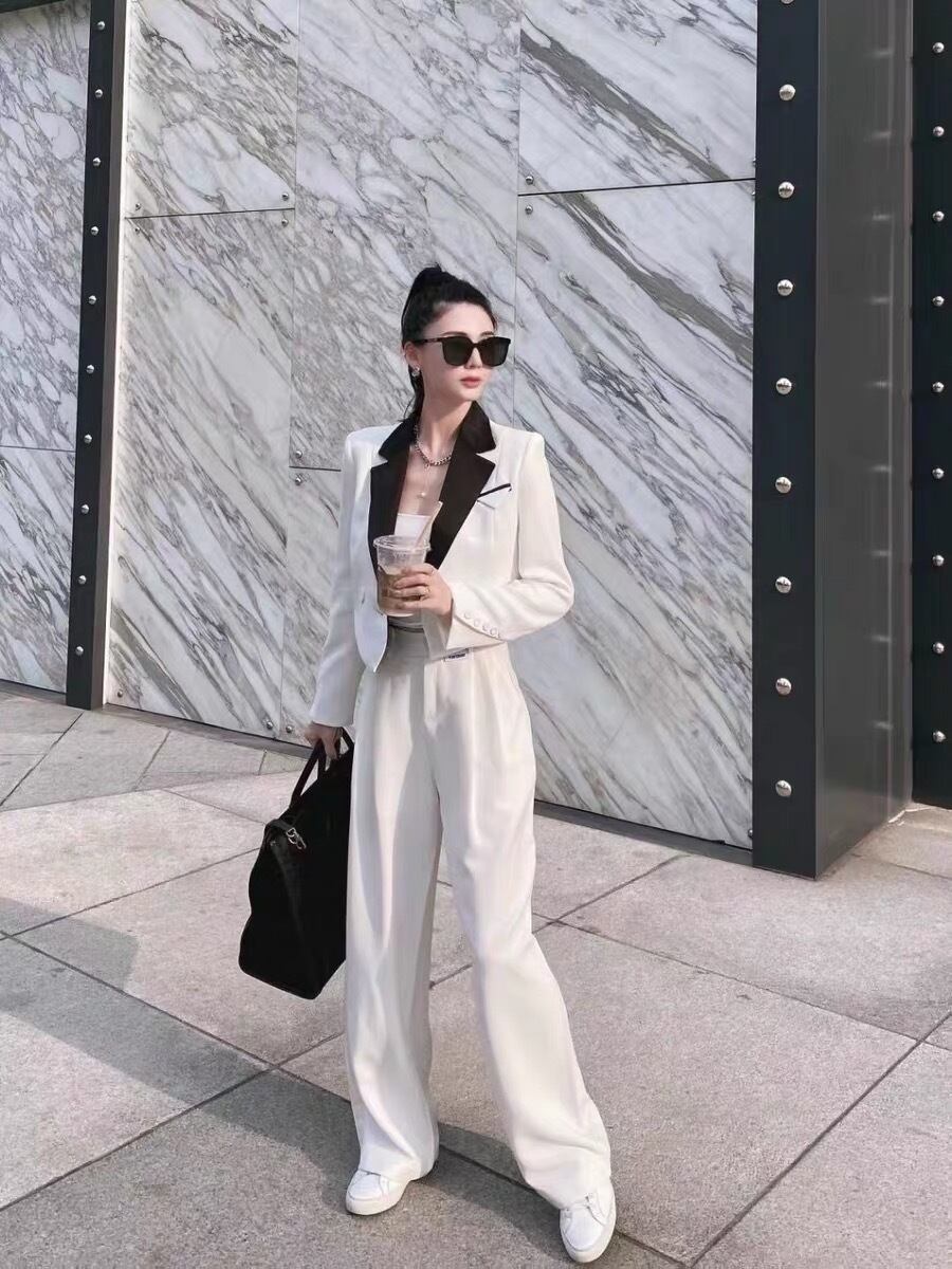 Pinkoz 女性イングランドスタイルへそ露出ショートブレザー Feminino 春秋白ストリートジャケットトップス女性 y2k ピンク ホワイト スプリング 春物 オータム 秋物 ヨーロピアン