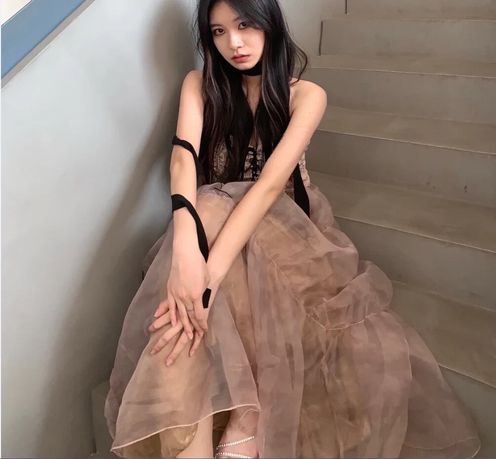 Pinkoz デザイナー ヴィンテージ スタイリッシュな女性オフ ショルダー ミディ メッシュ ドレス パッチワーク セクシーなぬるぬる ハイ ウエスト リボン パーティー ドレス za ハイウェスト ピンク ビンテージ