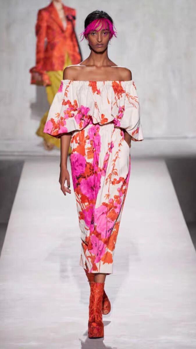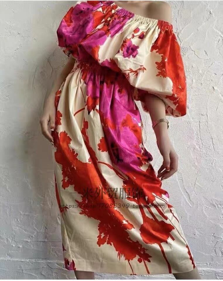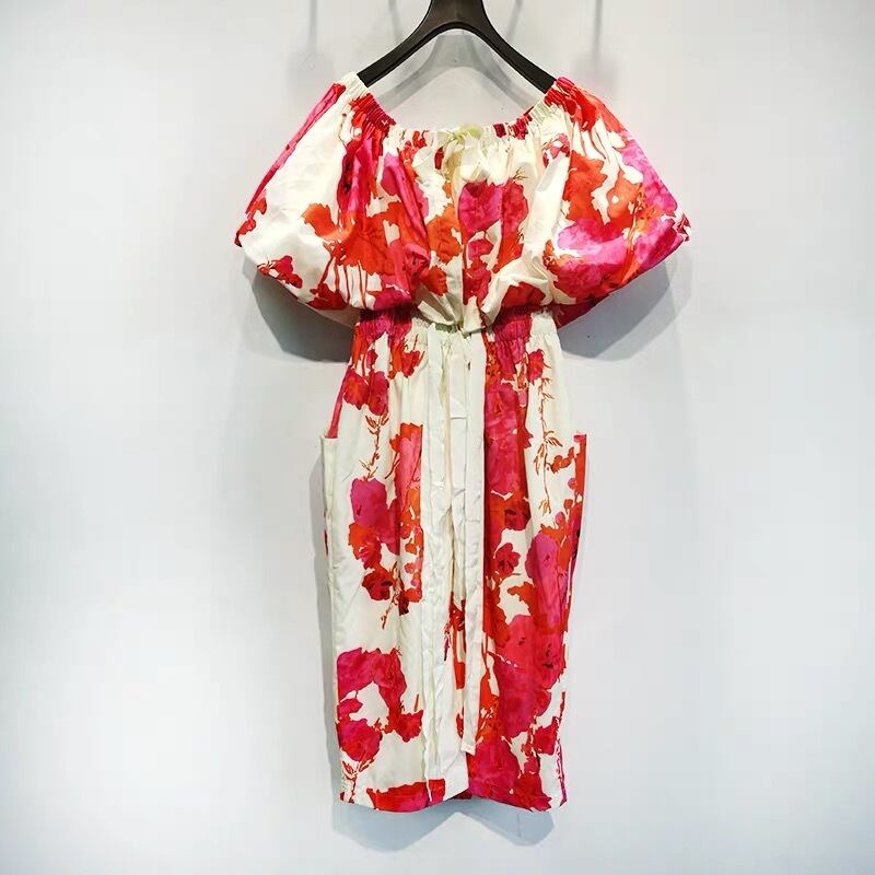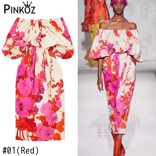 Pinkoz スラッシュネック赤 flowe プリントストローストリングハイウエストペンシルドレスミディ女性ドレスセレブ滑走路デザイナー vestidos ハイウェスト ピンク レッド