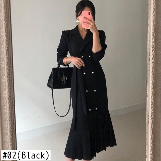 Pinkoz 韓国ファッション ベージュ エレガントなダブル ブレスト パッチワーク プリーツ マーメイド ミディ ドレス ベルト オフィス レディ vestidos デ mujer ピンク ハーネス 会社 学校 通勤や通学にも
