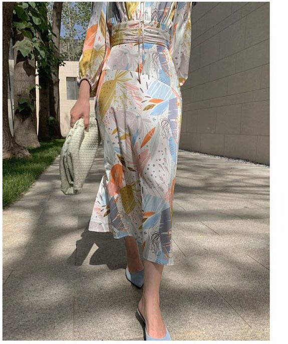 Pinkoz カジュアル スウィート ヤング スタイリッシュ ポルカ ドット フローラル プリント ハイウエスト Aライン ミディ ドレス くり抜き 女性 春 夏 新作 座 ハイウェスト ピンク 大人ガーリー キュート スプリング 春物 サマー 夏物 花柄