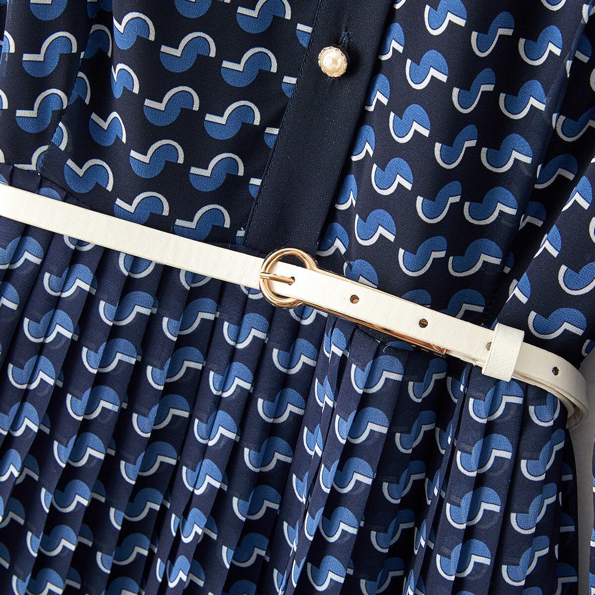 Pinkoz 女性ブルーチェック柄の女性ドレスターンダウン首輪長袖プリーツハイウエストエレガントなオフィスレディビッグサイズローブ M-3XL ハイウェスト ロング ピンク 会社 学校 通勤や通学にも