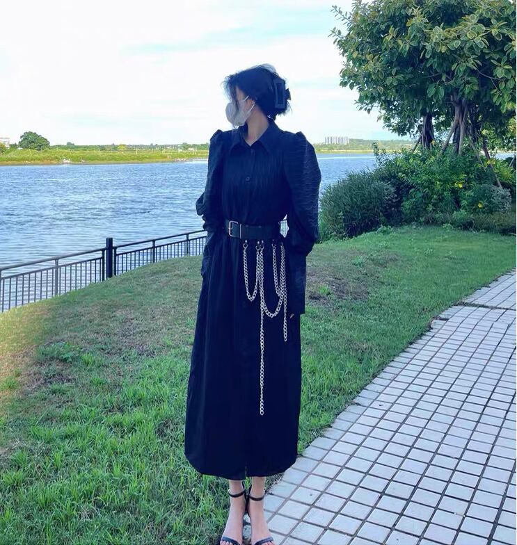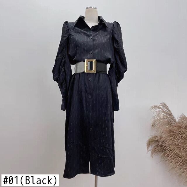 Pinkoz 滑走路デザイナー グリーン ジャガード ターン ダウン襟ランタン スリーブ シングル ブレスト秋春パーティー エレガントなドレス ベルト z ピンク ランタンスリーブ スプリング 春物 オータム 秋物 ハーネス