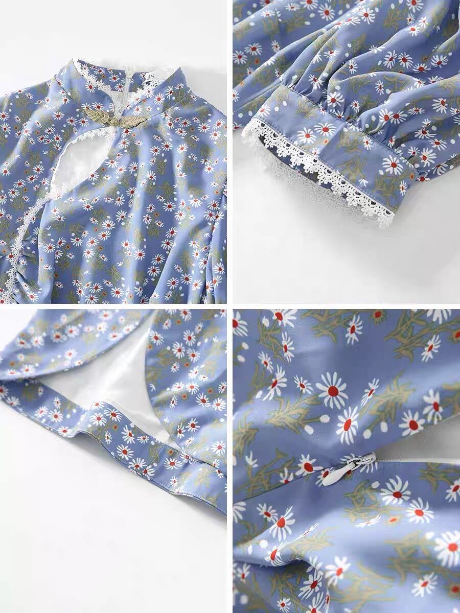 Pinkoz ヴィンテージ ボタン フローラル プリント ペンシル ミディ ドレス パッチワーク スプリット デイジー フラワー ストレート ショート スリーブ ドレス vestidos traf ピンク 半袖 ハーフスリーブ 花柄 フラワーデザイン ビンテージ