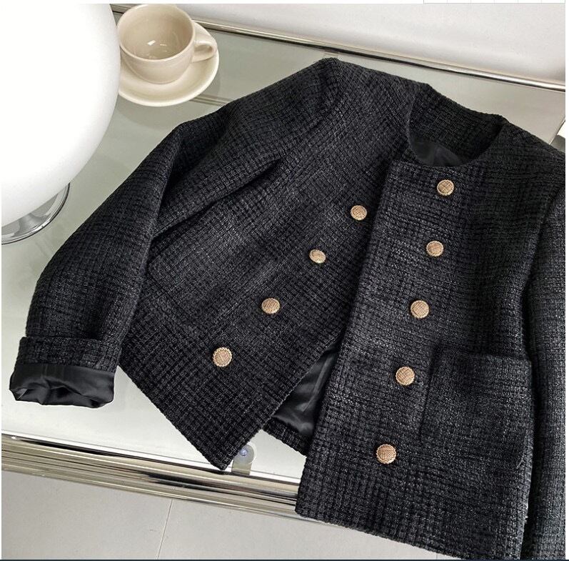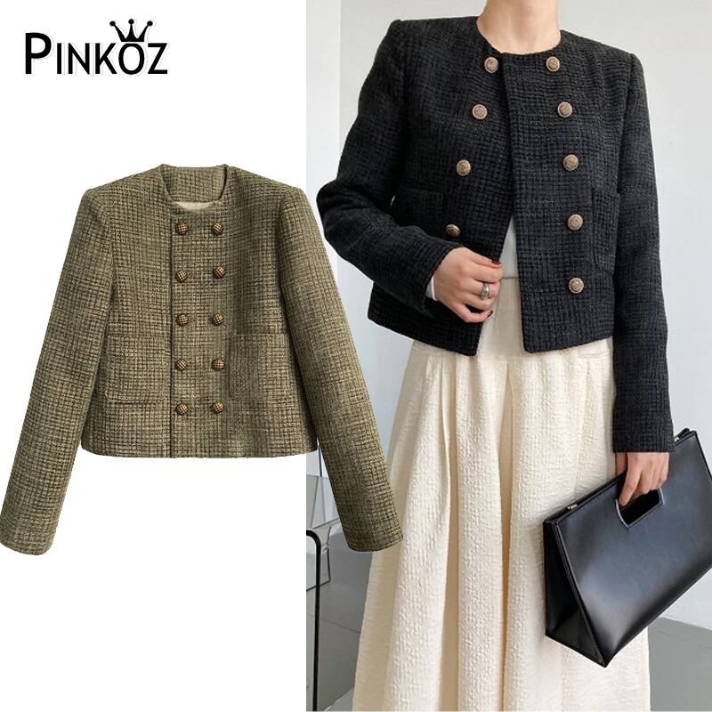 Pinkoz ボタン ツイード ジャケット コート 秋冬 レトロ 長袖 ショート シック トップス ストリート za ロング ピンク オータム 秋物 ウィンター 冬物