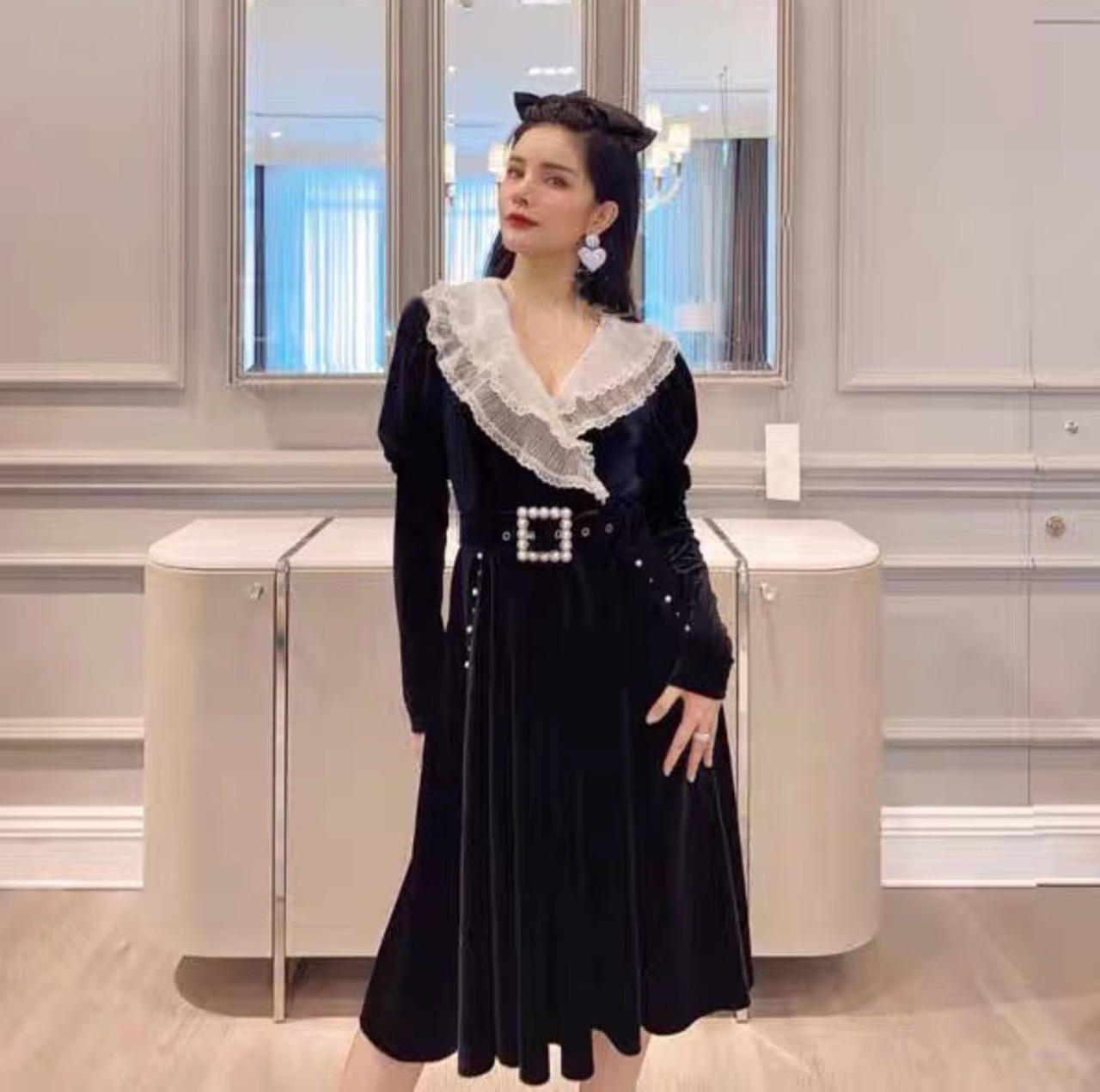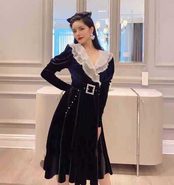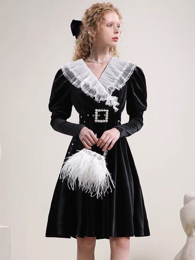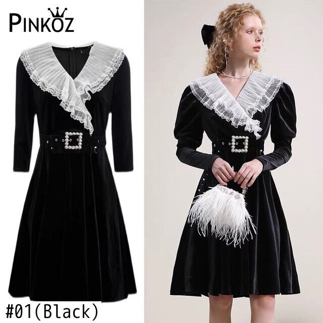 Pinkoz 滑走路デザイナー黒パッチワーク ワーク レース ピーターパン襟ミニ A ライン ドレス パーティー秋パーティー女性ドレス vestidos za ピンク ブラック オータム 秋物 Aライン