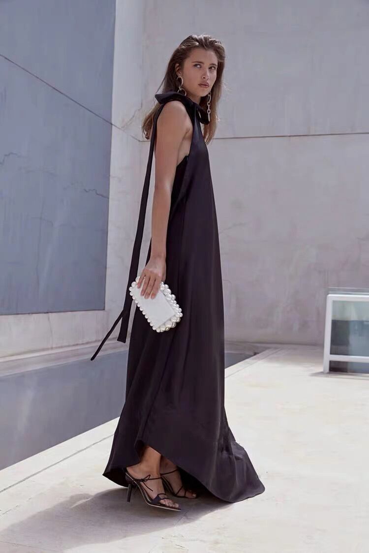Pinkoz 滑走路デザイナー スタイリッシュな黒背中の開いたセクシーなマキシ ドレス ホルター レースアップ女性緩い女性ドレス パーティー ナイト vestidos traf ピンク ブラック