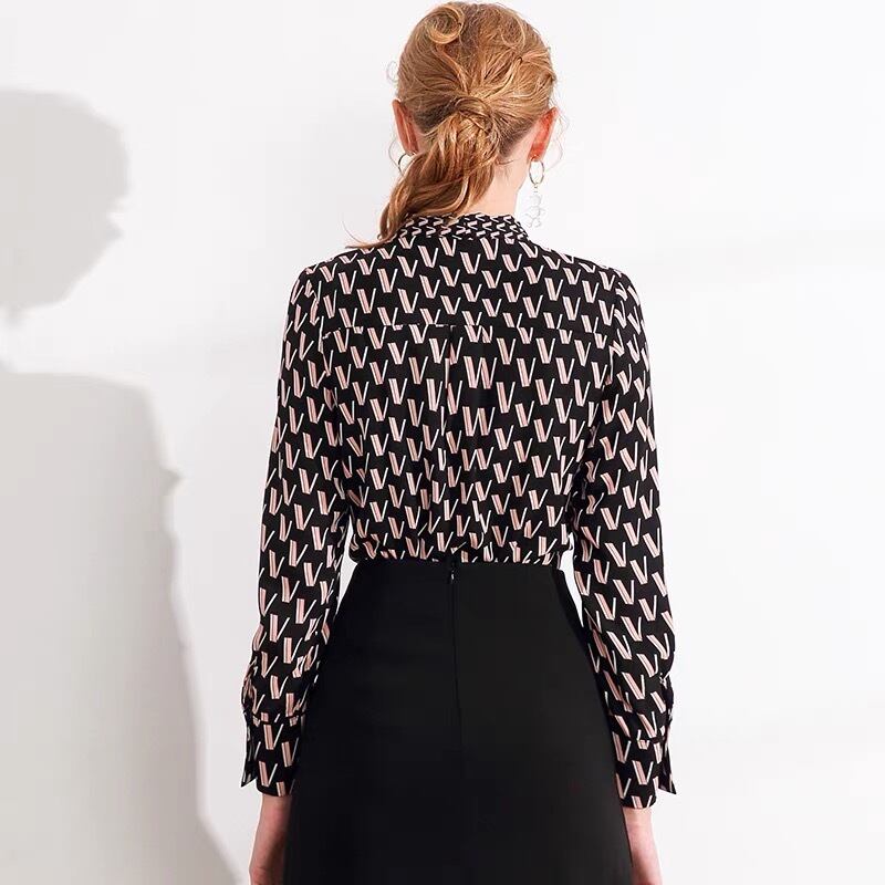 Pinkoz カジュアルブラウス女性 v レタープリントエレガントなフレンチオフィスレディレトロ女性シャツ blusas mujer ファムストリートウェア топ traf ピンク フェミニン 会社 学校 通勤や通学にも