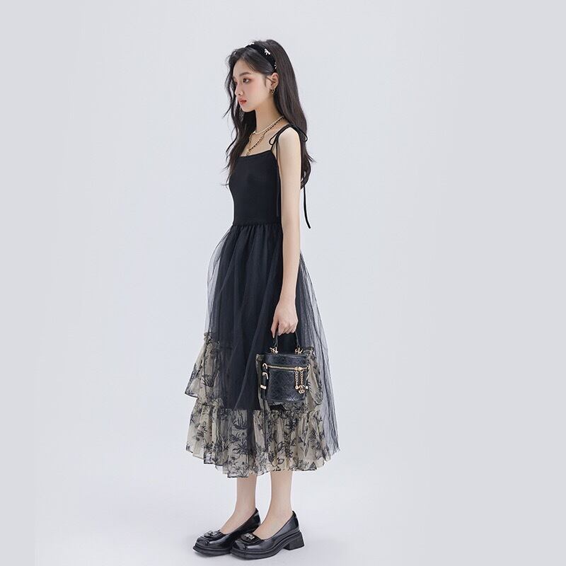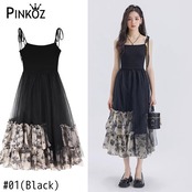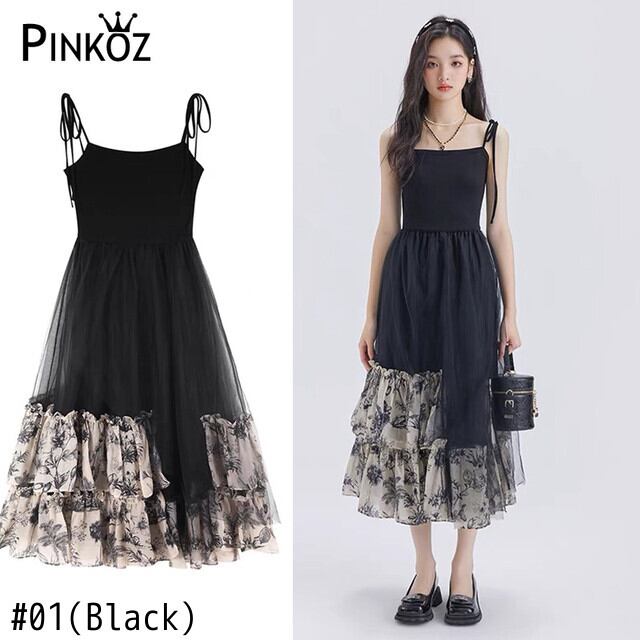 Pinkoz ファッション女性ミディドレスゴシックスパゲッティストラップぬるぬるパッチワークメッシュプリントキャミソール夏 vestidos ピンク サマー 夏物