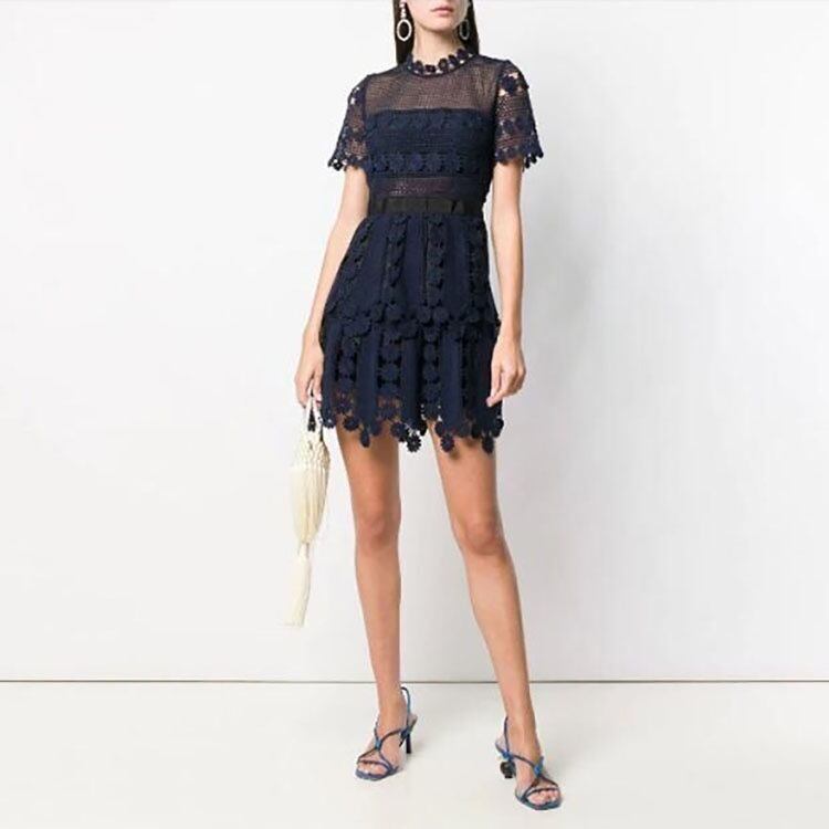 Pinkoz ヴィンテージ デザイナー vestidos紺中空アウト レース ミニ ドレス パーティー ナイト エレガント サマー ドレス ファッション Y2k ピンク ブルー 夏物 ビンテージ