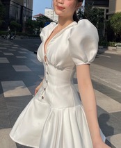 Pinkoz 女性ホワイトサテンミニドレス v ネックシングルブレストサテンパーティーナイトセクシーなショートドレス女性 vestidos ピンク Vネック