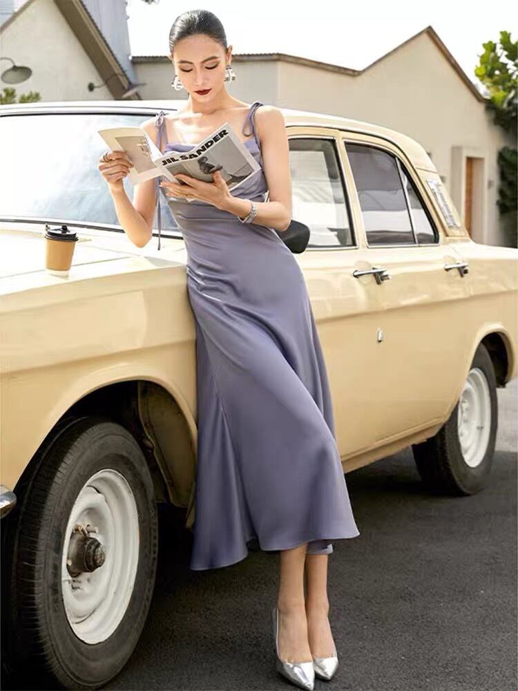 Pinkoz 女性パープルシャーリングサテンミディドレスセクシーなレースアップパーティードレスパーティーナイトシックなローブデ mujer vestidos ファッション服 ピンク