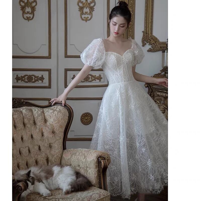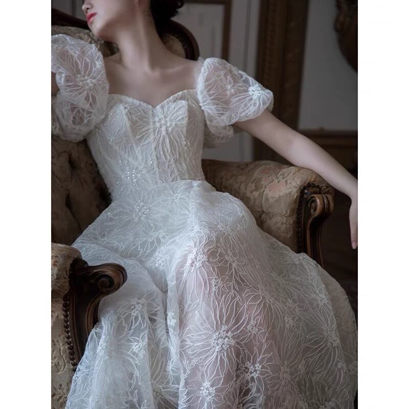 Pinkoz ランウェイ ドレス スリーブ スクエア ネック チャーミング ローブ ド マリー サッシュ付き 刺繍入り ビーチ 素朴なセレブスタイル ピンク スクウェア