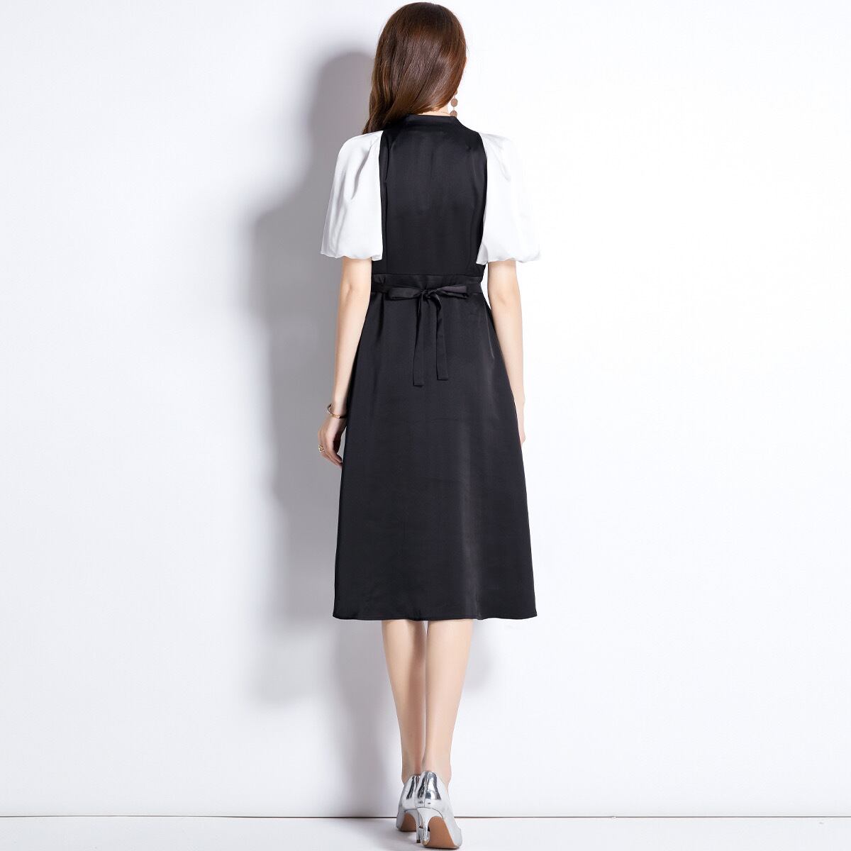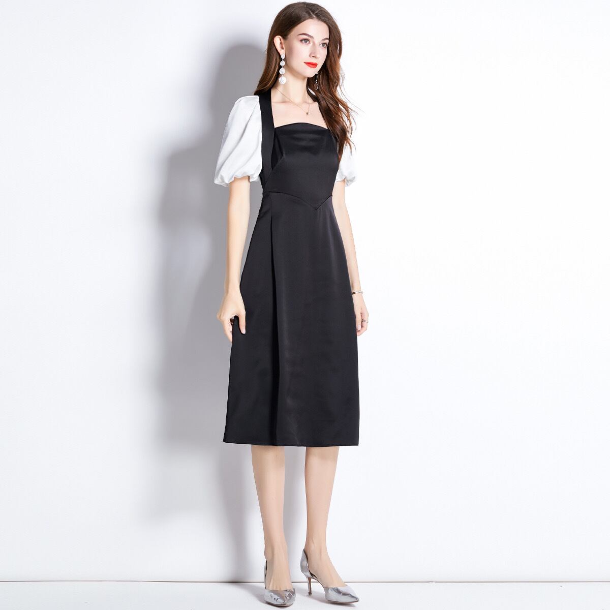 Pinkoz 春ミディドレス女性長袖サテンパーティーアプリコット甘いドレス ロング ピンク 大人ガーリー スウィート キュート カジュアル スプリング 春物