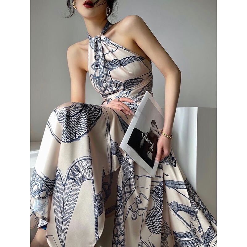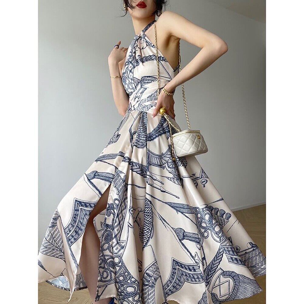 Pinkoz 女性の夏のパーティー ミディ ドレス ヴィンテージ ホルター マリリン ・ モンロー セクシー な プリント ナイト クラブ ロング ドレス ハイ ウエスト vestidos traf ハイウェスト ピンク サマー 夏物 ビンテージ