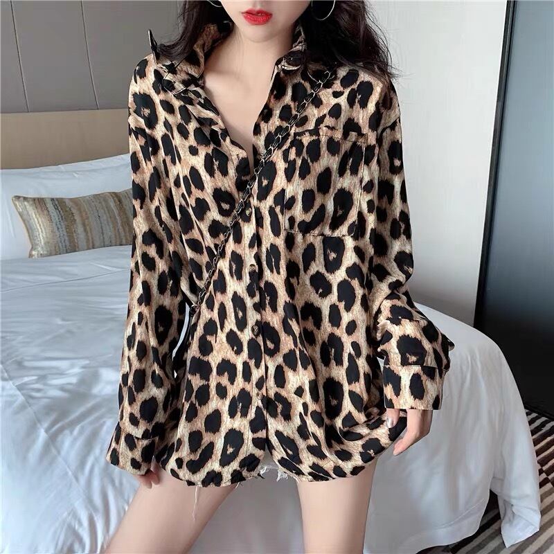 Pinkoz レディース ヒョウ柄 長袖 トップスとブラウス ルーズ プラスサイズ セクシー パーティー blusas femininas エレガンテ シュミーズ ロング ピンク 大きめサイズ エレガント フェミニン