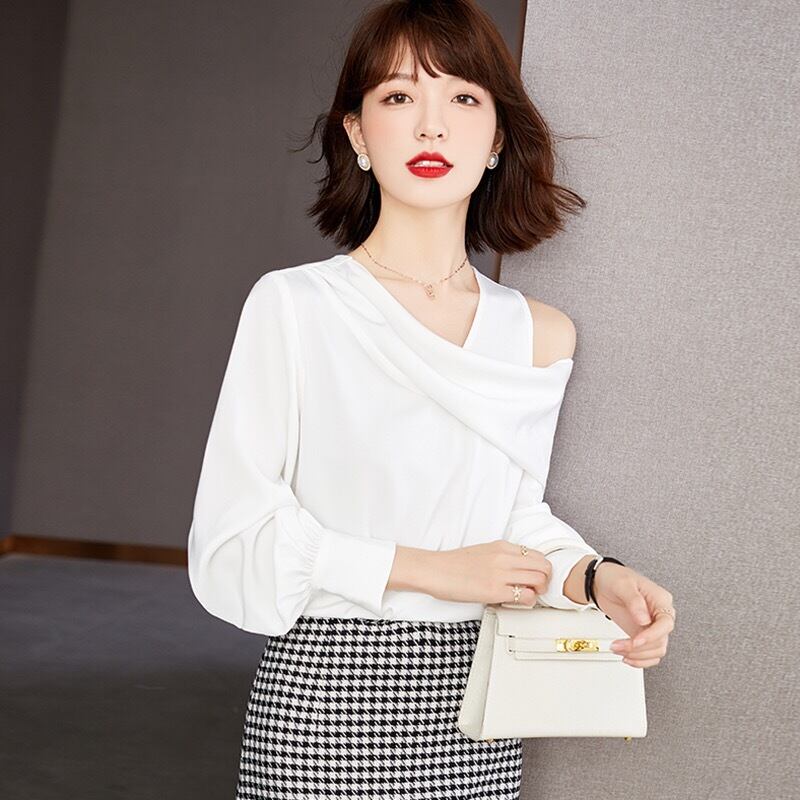 Pinkoz エレガントなサテンピンク中空アウト女性ブラウス女性デザイナーオフィスレディフレンチ女性トップス作業服シャツ春シック スプリング 春物 会社 学校 通勤や通学にも