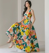 Pinkoz 女性の夏のドレス花柄ノースリーブドレスタンクドレスショートレトロパーティーナイト自由奔放に生きるドレス Vestidos ピンク サマー 夏物