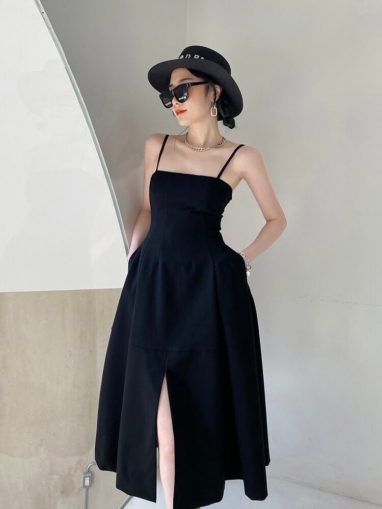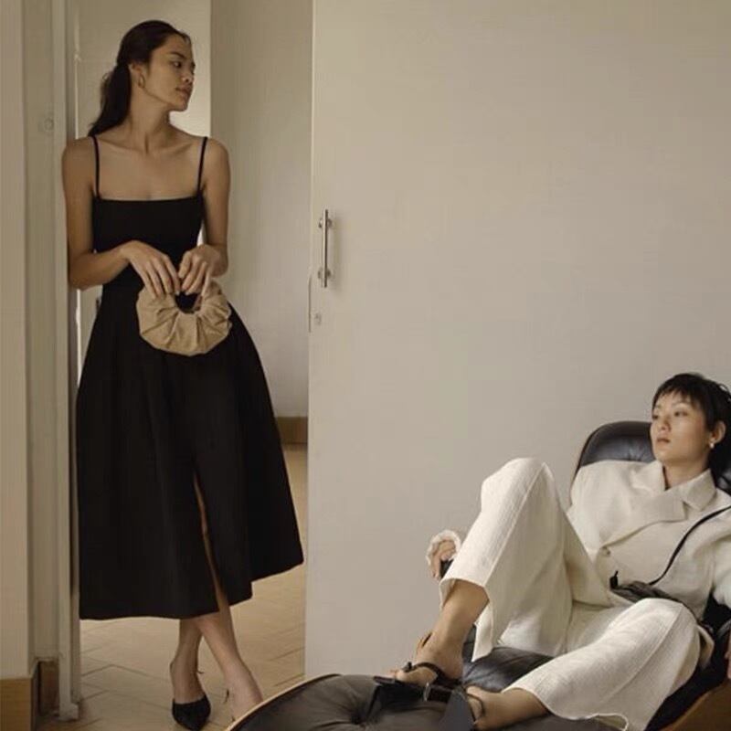 Pinkoz ヴィンテージ スパゲッティ ストラップ パーティー黒ミディ ボール ガウン ドレス女性ゴシック ジャカード キャミソール ディナー ナイト ローブ ファム エテ トラフ ピンク ブラック フェミニン ビンテージ