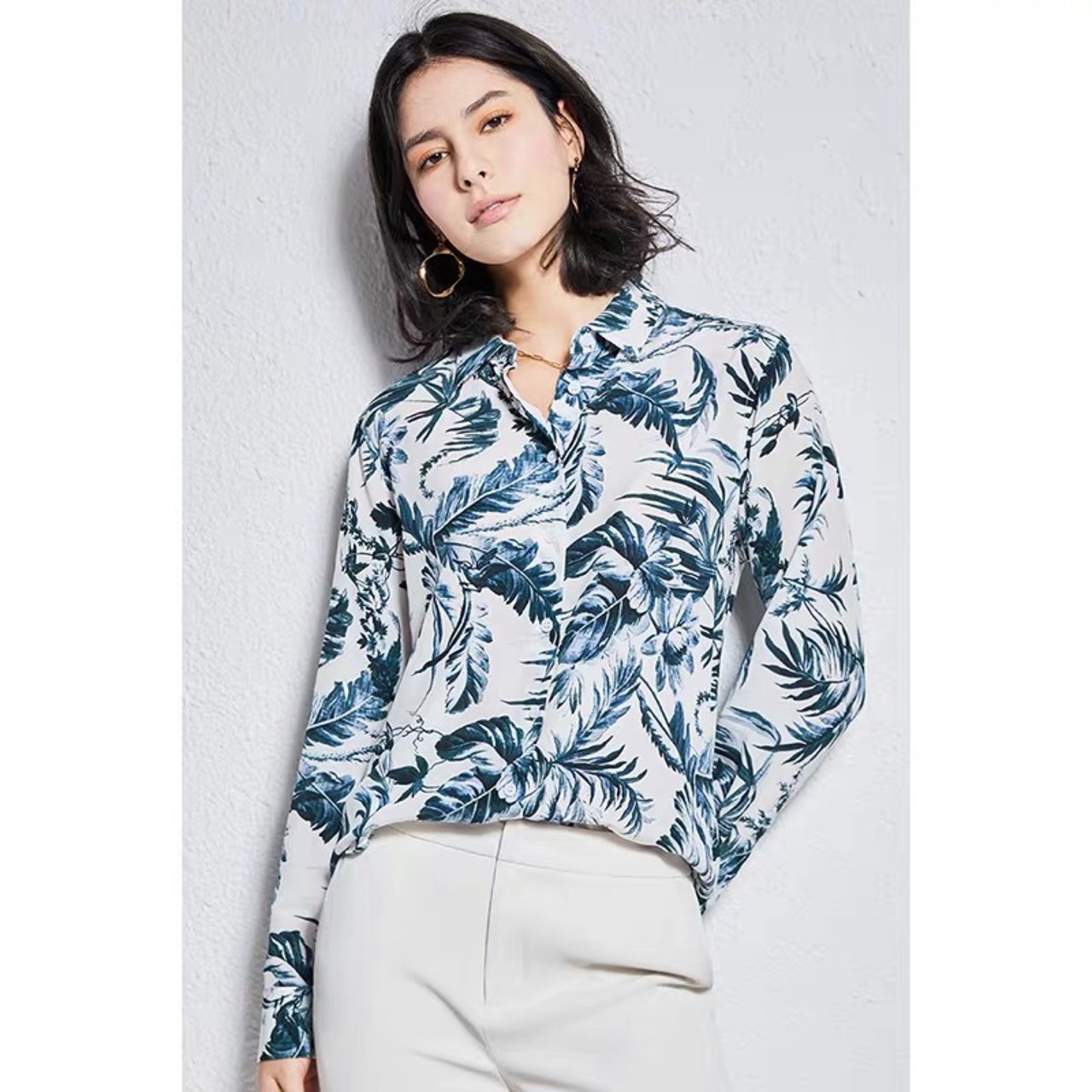 Pinkoz 女性 elgant 春秋花柄プリントシャツターンダウン襟オフィスレディブルー blusas mujer de moda traf ピンク スプリング 春物 オータム 秋物 会社 学校 通勤や通学にも