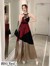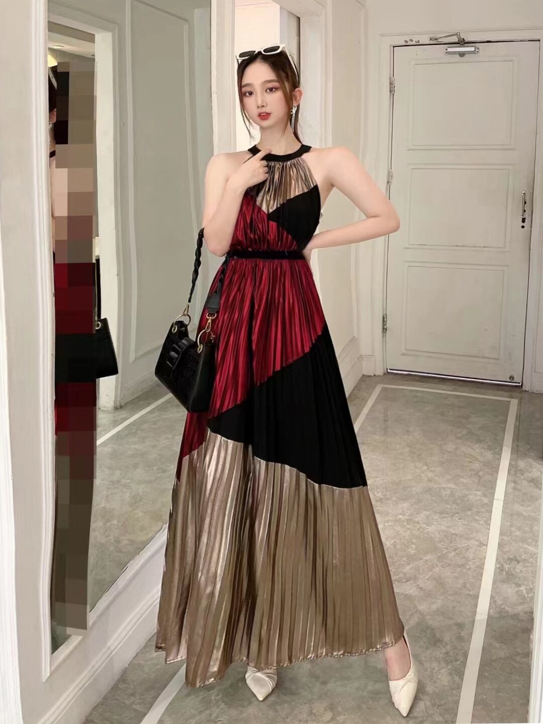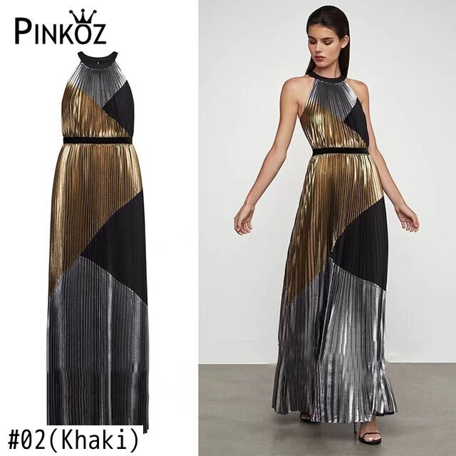 Pinkoz 女性プリーツロングドレスホルター奨学金ノースリーブパーティーナイト誕生日スタイリッシュなドレスファッション vestidos デ verano mujer ピンク