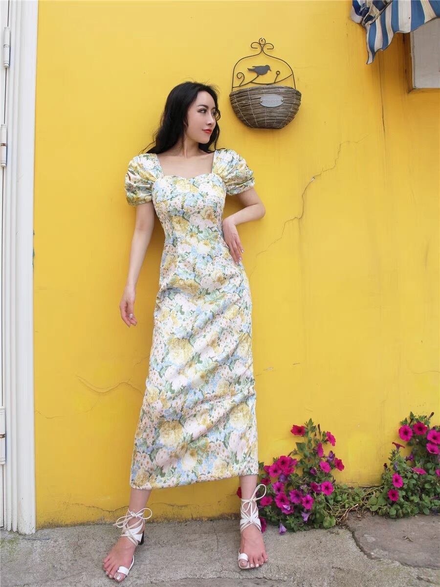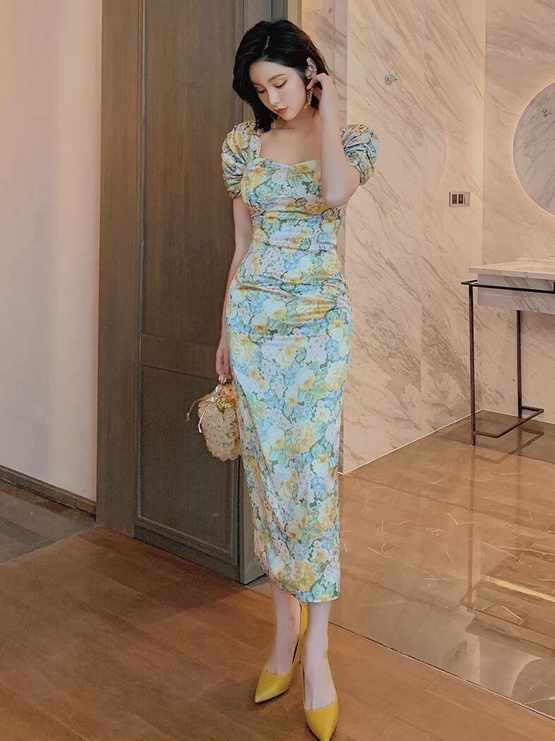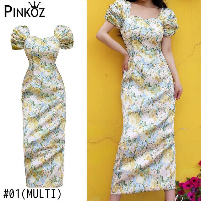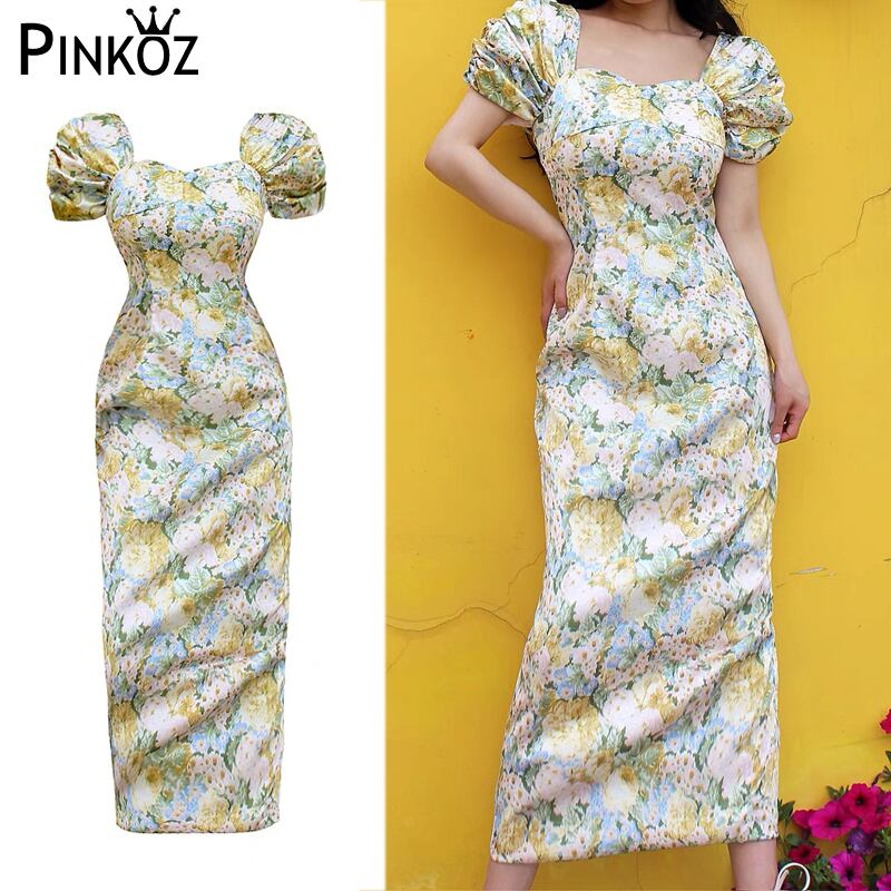 Pinkoz 女性デザイナー スタイリッシュなミディ ドレス花の絵画ノースリーブ夏鉛筆ストレート ボディコン自由奔放に生きる vestidos トラフ ファッション ピンク サマー 夏物 花柄