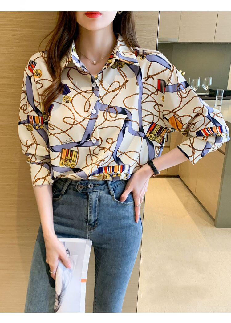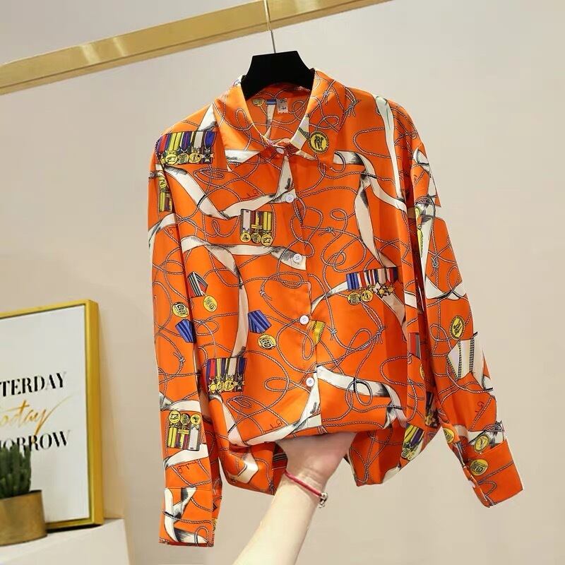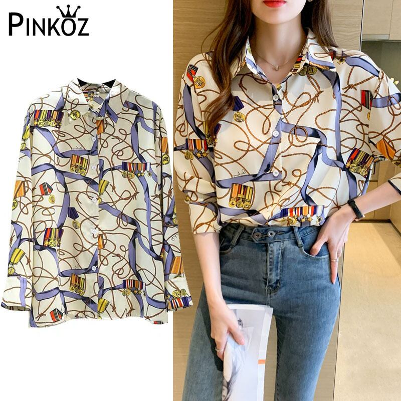 Pinkoz バロックプリント女性ブラウスカジュアルプラスサイズフルスリーブ春夏シャツ女性ハイストリートファッション服 blusas za ピンク 大きめサイズ スプリング 春物 サマー 夏物