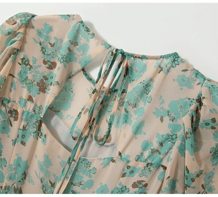 Pinkoz 滑走路夏シック自由奔放に生きるドレス女性のショート フラワー プリント パーティー膝丈ロング ドレス Vestdios ピンク サマー 夏物 フラワーデザイン