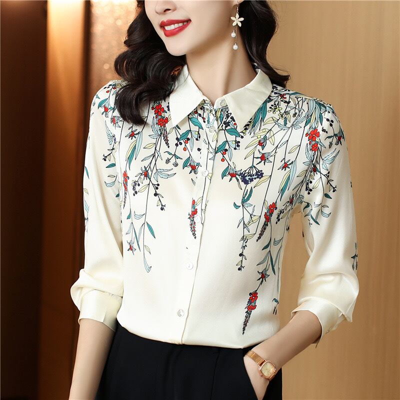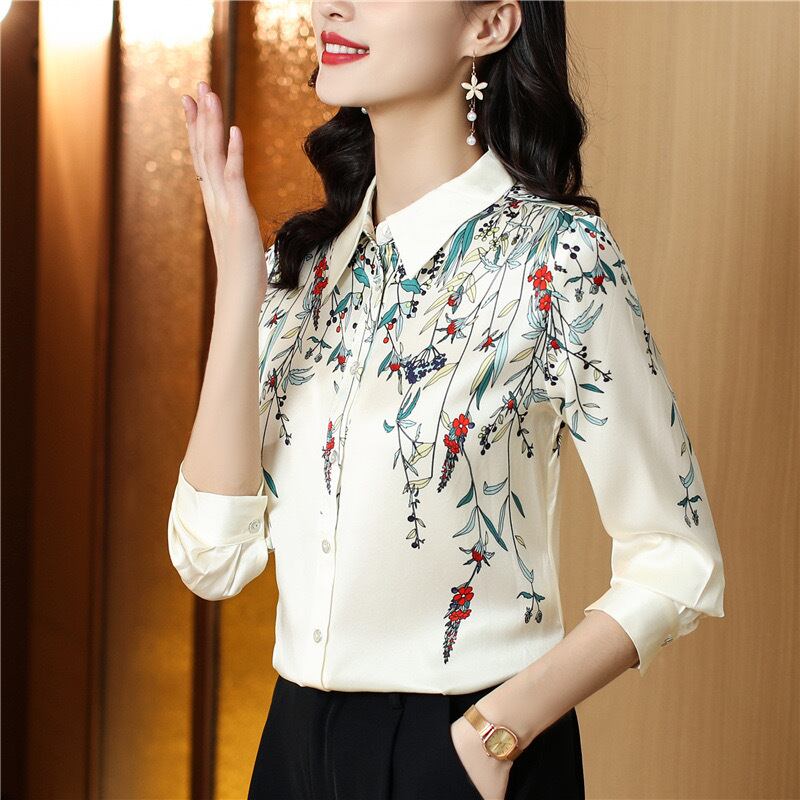 Pinkoz 気質プリント レディース シャツ ルーズ サイズ 3XL フルスリーブ ガールズ トップス 花柄 プリント ブラウス ピンク