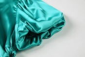 Pinkoz デザイナーグリーンサテンミディドレス中空アウト O ネックパフスリーブ女性ぬるぬるボディコンパーティーセクシーなドレス女性 vestidos シック ピンク Oネック
