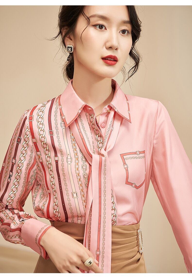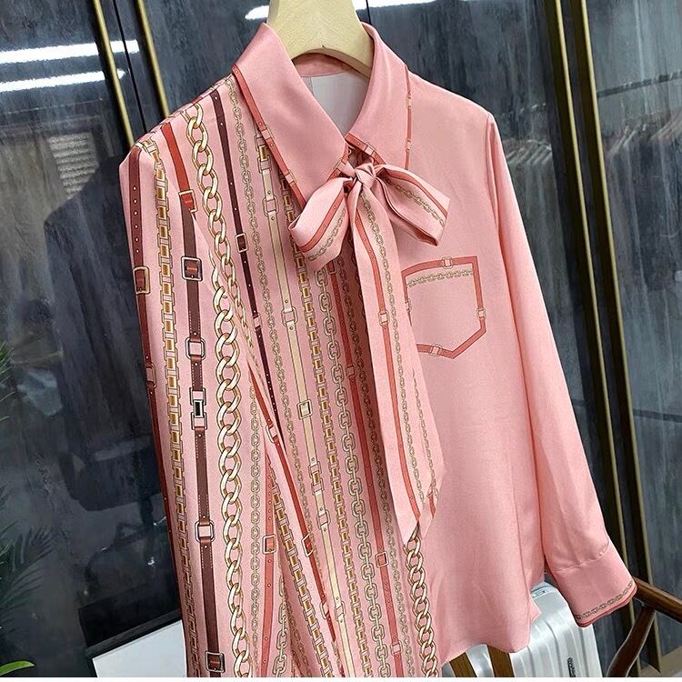 Pinkoz パフスリーブピンクブラウス女性シャツ弓シフォンシャツ秋スリム op オフィスデモーダ緩いサイズ 3xl リボン オータム 秋物 会社 学校 通勤や通学にも