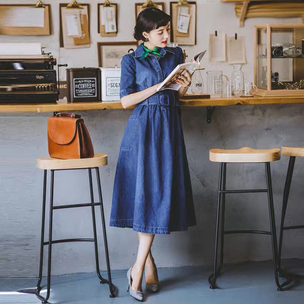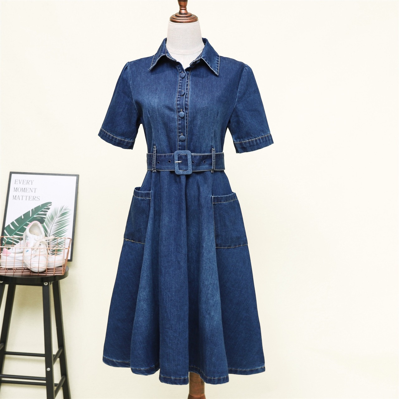Pinkoz セレブヴィンテージレトロミディドレス女性春夏スリムデニムドレスヒットカラー A ライン新ファッションベルト ピンク スプリング 春物 サマー 夏物 ハーネス Aライン ビンテージ