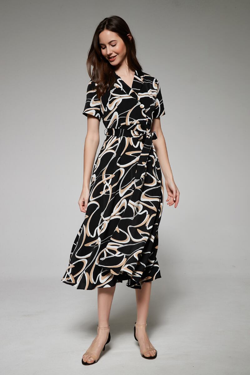 Pinkoz エレガント カジュアル ミディ ドレス v ネック半袖夏の女性ドレス サッシ レースアップ プリント毎日オフィス レディ服ローブ ショート ピンク ハーフスリーブ サマー 夏物 Vネック 会社 学校 通勤や通学にも
