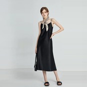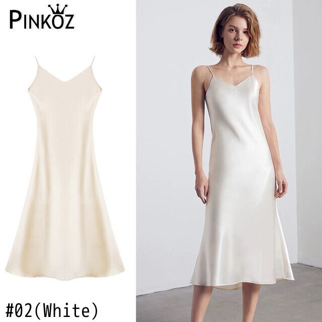 Pinkoz 女性のセクシーなカジュアルホワイトサテンミディドレス v ネックキャミソールスパゲッティストラップ基本的な A ラインパーティーナイト vestidos ヴィンテージ traf ピンク Vネック Aライン ビンテージ