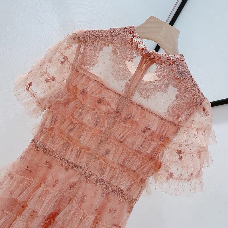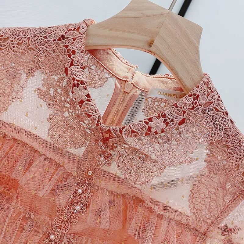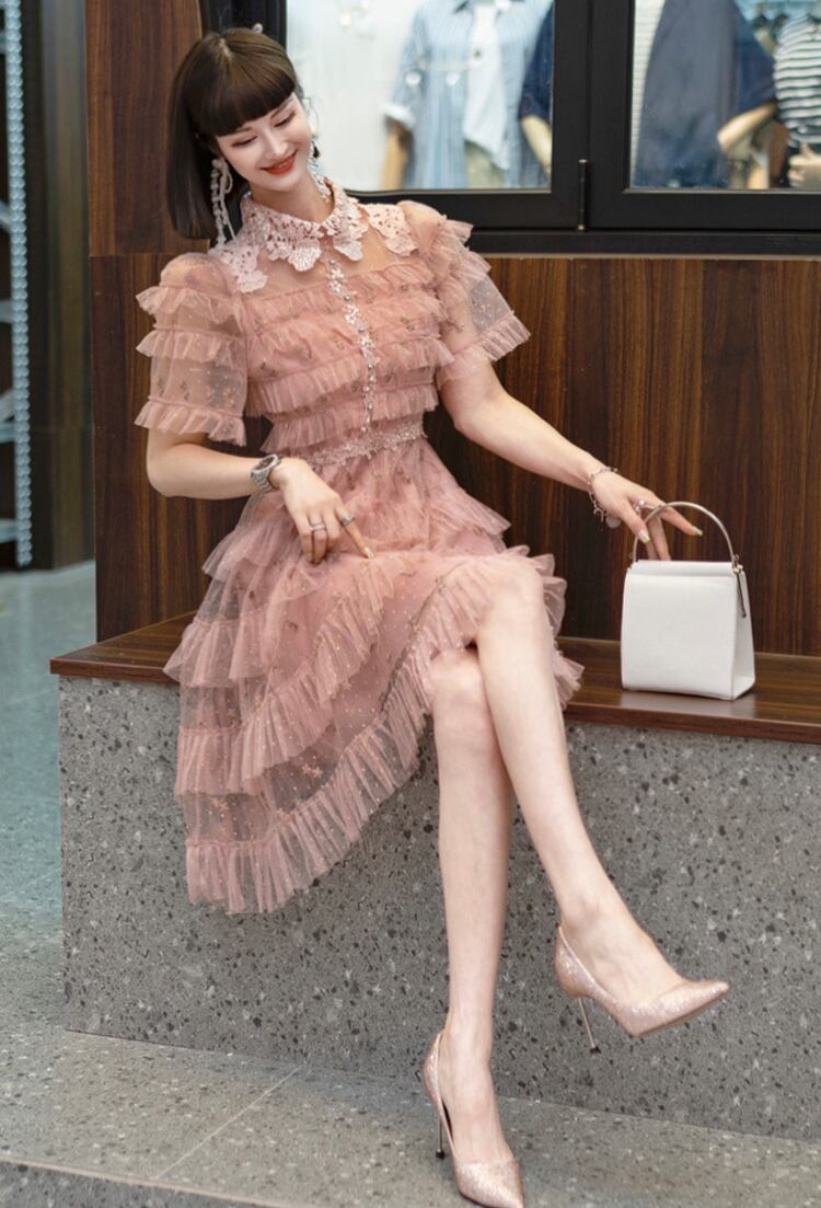 Pinkoz レディース サマー レース ドレス フェスタ Vestidos オフィス パーティー ピンク ショート ローブ 夏物 会社 学校 通勤や通学にも