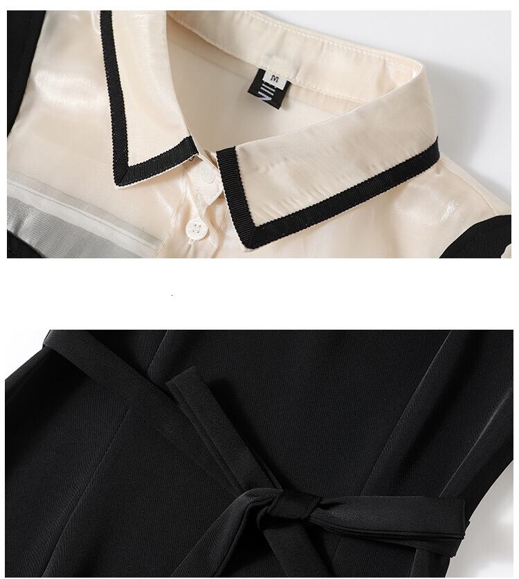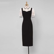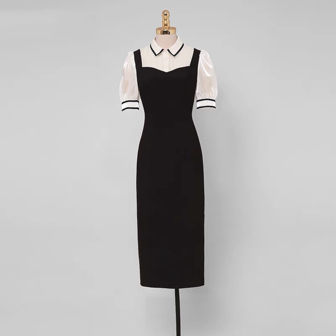 Pinkoz エレガント ストレート ミディ ドレス パッチワーク メッシュ 半袖 オフィス レディ 作業服 ブラック ドレス フレンチ エレガント ベスト ショート ピンク ハーフスリーブ 会社 学校 通勤や通学にも