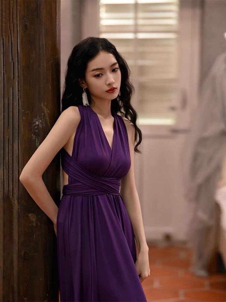 Pinkoz ファッション衣類の女性紫のセクシーなレースアップマキシぬるぬるドレス背中の開いたパーティーナイトぬるぬるボディコン vestidos traf vestidos ピンク パープル