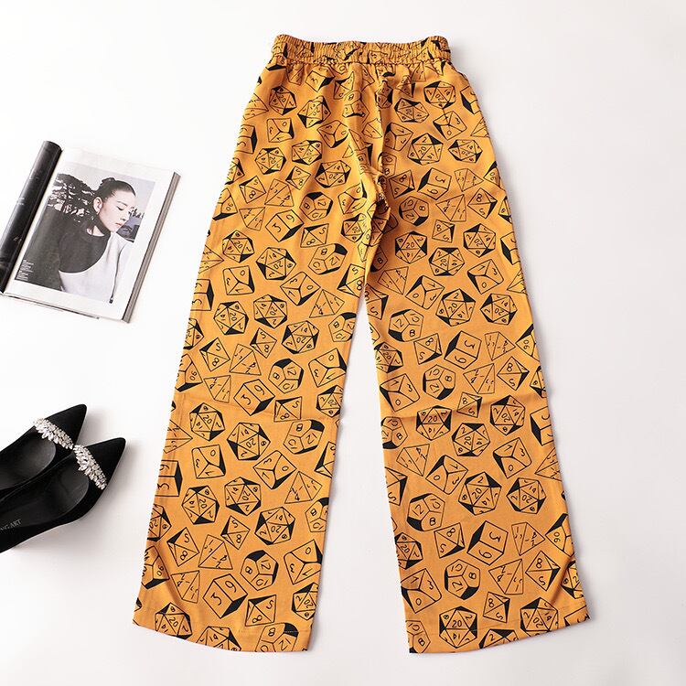 Pinkoz 滑走路デザイナープリントワイドレッグパンツレースアップ弾性ウエストオレンジロングファッション春秋のズボン女性ファムシック ピンク エラスティック 伸縮 スプリング 春物 オータム 秋物 フェミニン ワイドパンツ