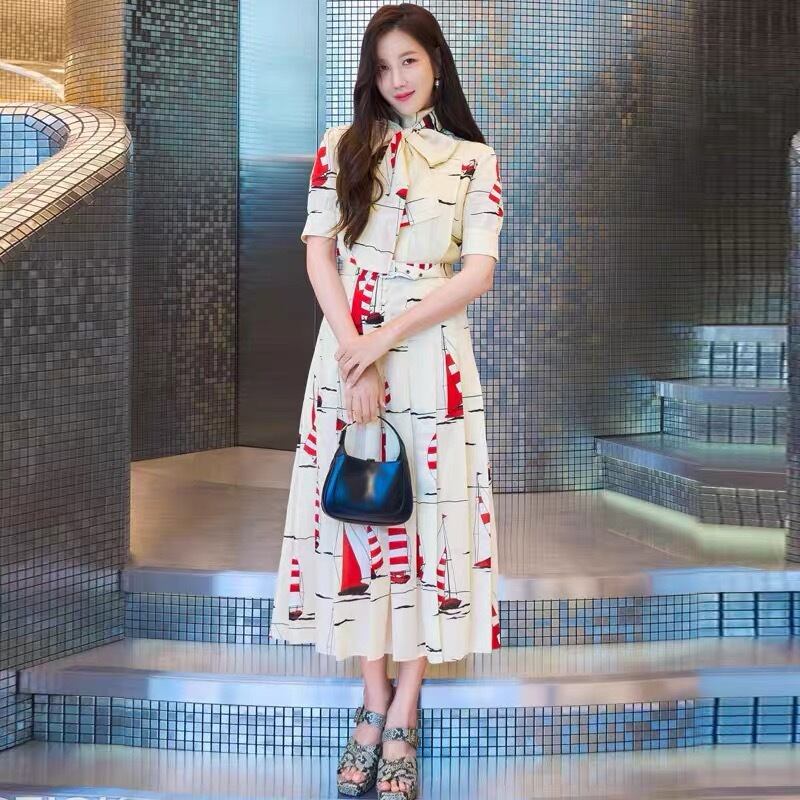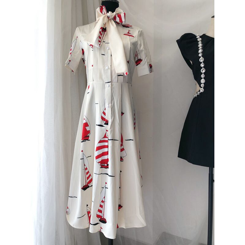 Pinkoz ランウェイ デザイナー 有名人 スタイリッシュ 幾何学模様 プリント シングル ブレスト ミディ ドレス ベージュ 半袖 リボン ローブ traf za ショート ピンク ハーフスリーブ