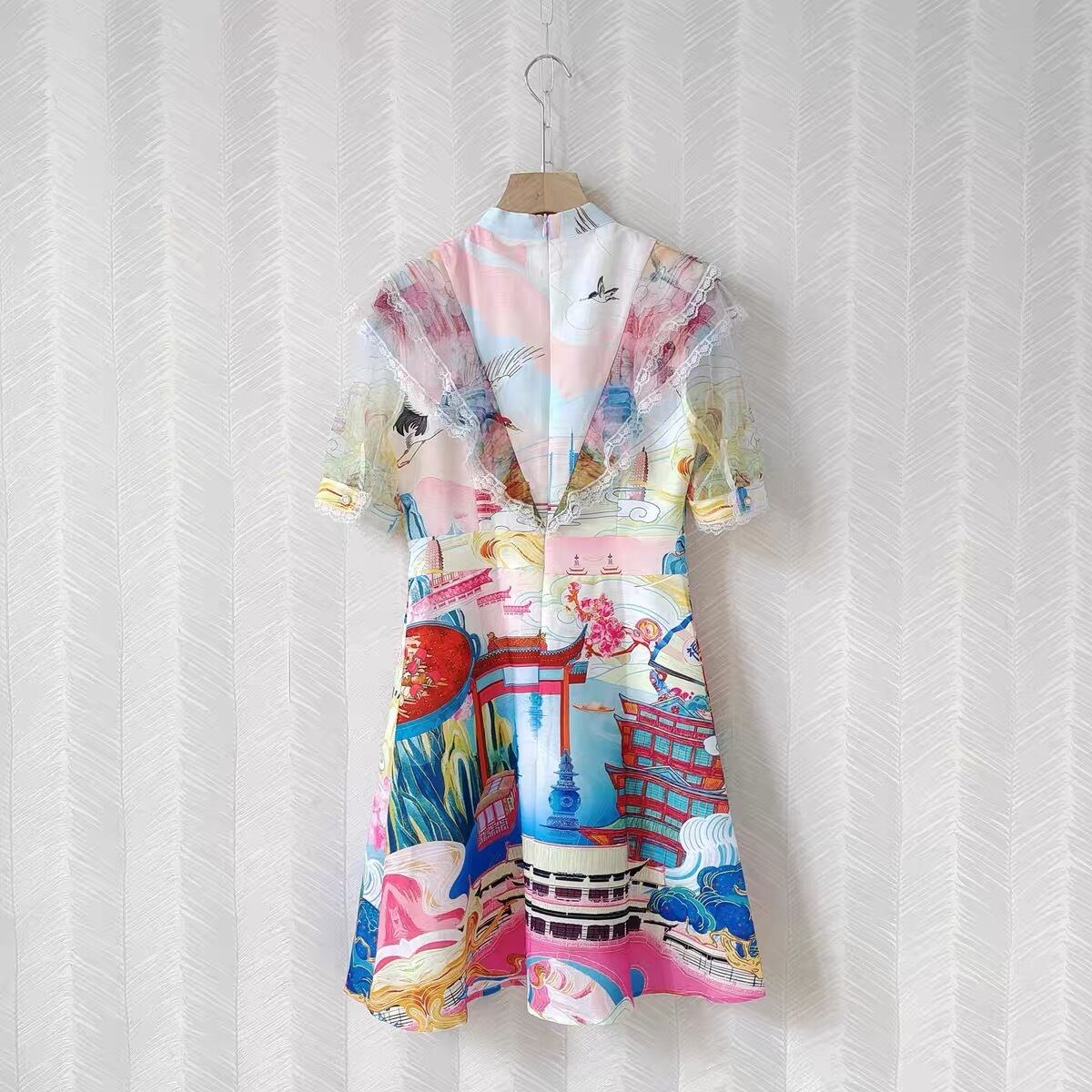 Pinkoz カジュアル女性 v ネックカラフルなグラデーションミディドレスレースアップサッシ春夏新ファッションドレスストリートウェア vestidos za ピンク スプリング 春物 サマー 夏物 Vネック