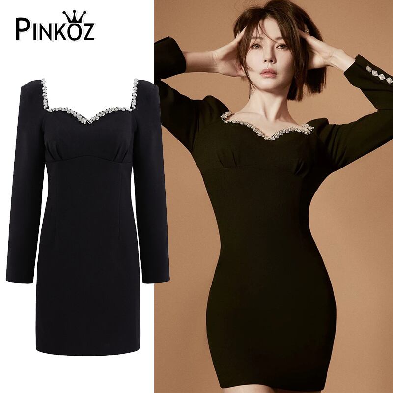 Pinkoz デザイナー有名人のスタイリッシュな黒のミニ ドレス クリスタル背中の開いたセクシーなぬるぬるパーティー ナイト ショート ドレス vestidos ヴィンテージ traf ピンク ブラック ビンテージ