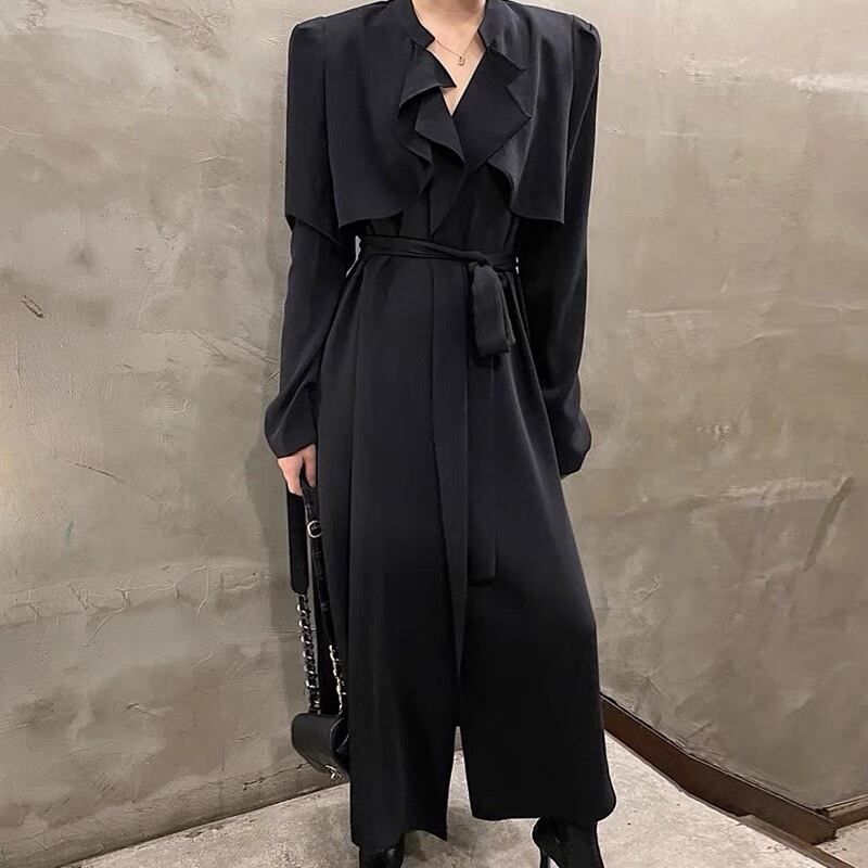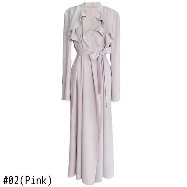 Pinkoz エレガントな女性フリルレースアップラップミディドレスオフィスレディファッション秋冬ドレスハイストリート vestidos za ピンク ラッフル オータム 秋物 ウィンター 冬物 会社 学校 通勤や通学にも