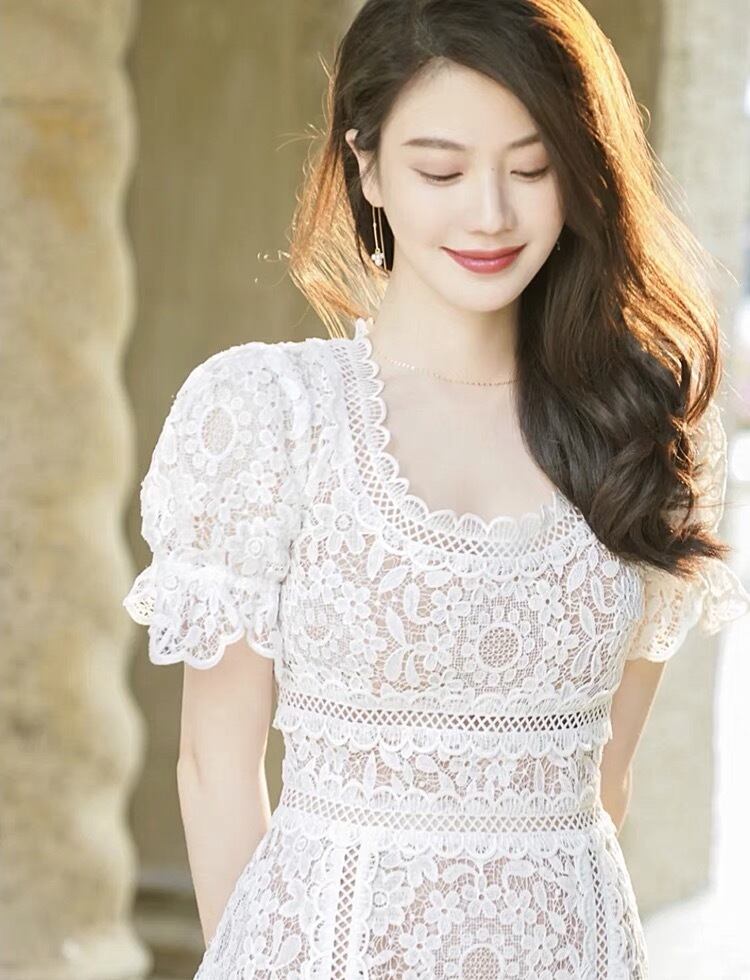 Pinkoz ヴィンテージ デザイナー イングランド スタイル tangada ミディ ドレス女性オフィス レディ エレガント レース中空アウト高級パーティー ベージュ ローブ ピンク ビンテージ ヨーロピアン 会社 学校 通勤や通学にも