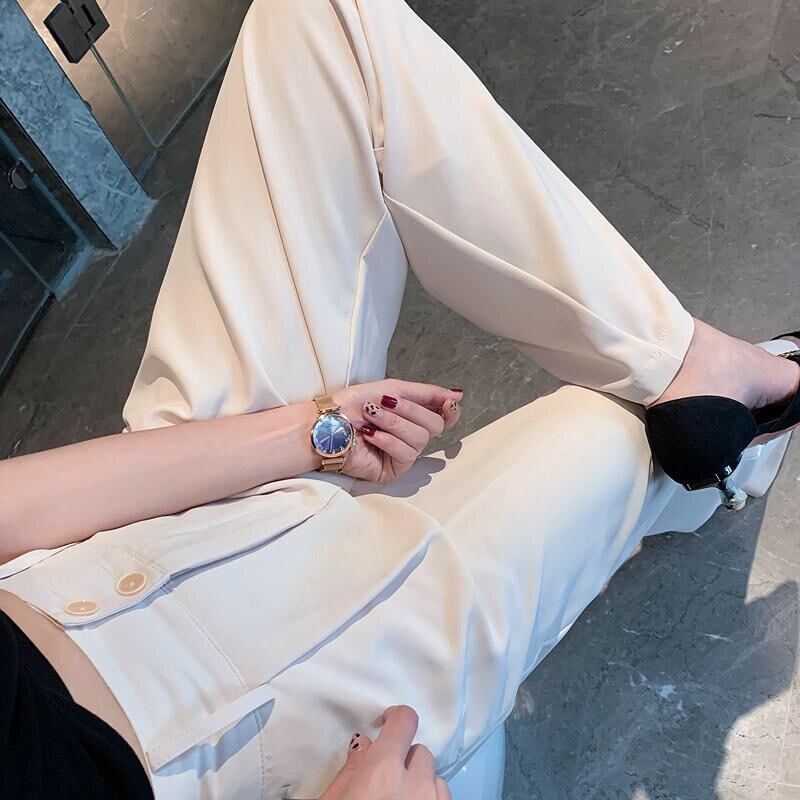 Pinkoz ベージュ ホワイト ワイドレッグパンツ ロング ハイウエスト パラッツォ ワーク OL服 シック 夏 春 ロングパンツ レディース カジュアル パンタロン ハイウェスト ピンク スプリング 春物 サマー 夏物 ワイドパンツ