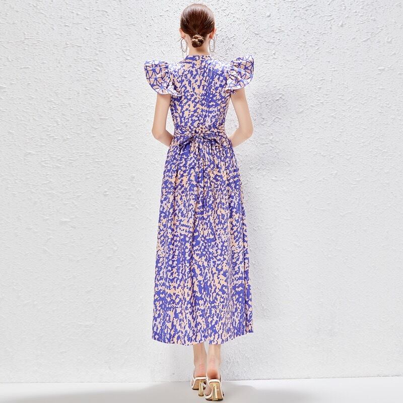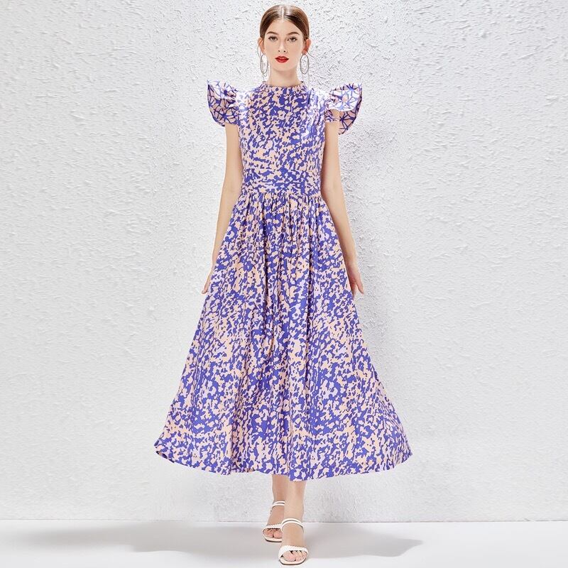 Pinkoz 滑走路デザイナー花柄シャーリング スタンド カラー夏ノースリーブ パーティー ローブ ファム ヴィンテージ ルーズ サイズ ドレス vestidos ピンク サマー 夏物 フェミニン ビンテージ