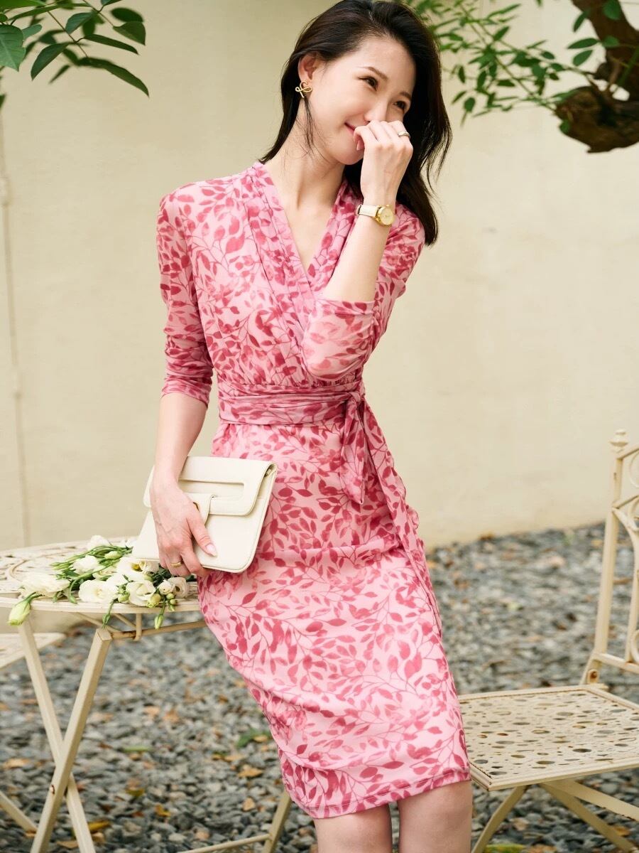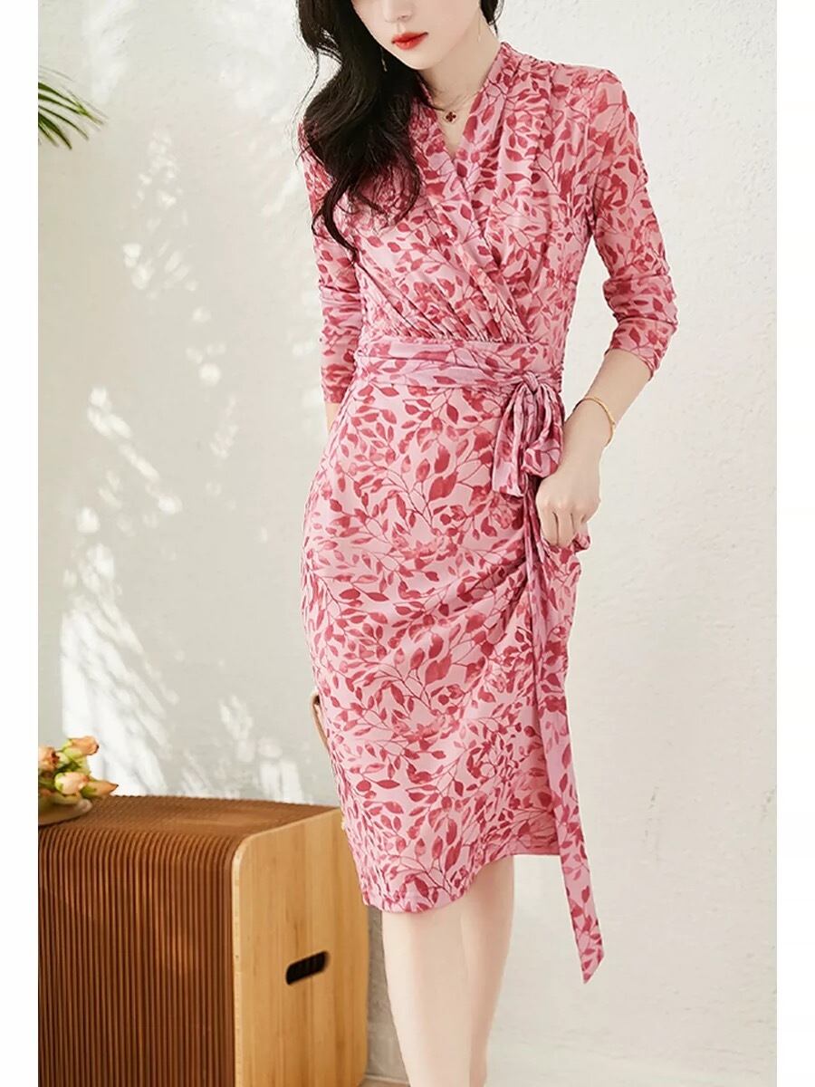 Pinkoz 秋の女性のセクシーなボディコンマーメイドドレスレースアップサッシパーティーレースドレス Vestidos 事務ピンクドレス Traf オータム 秋物 会社 学校 通勤や通学にも